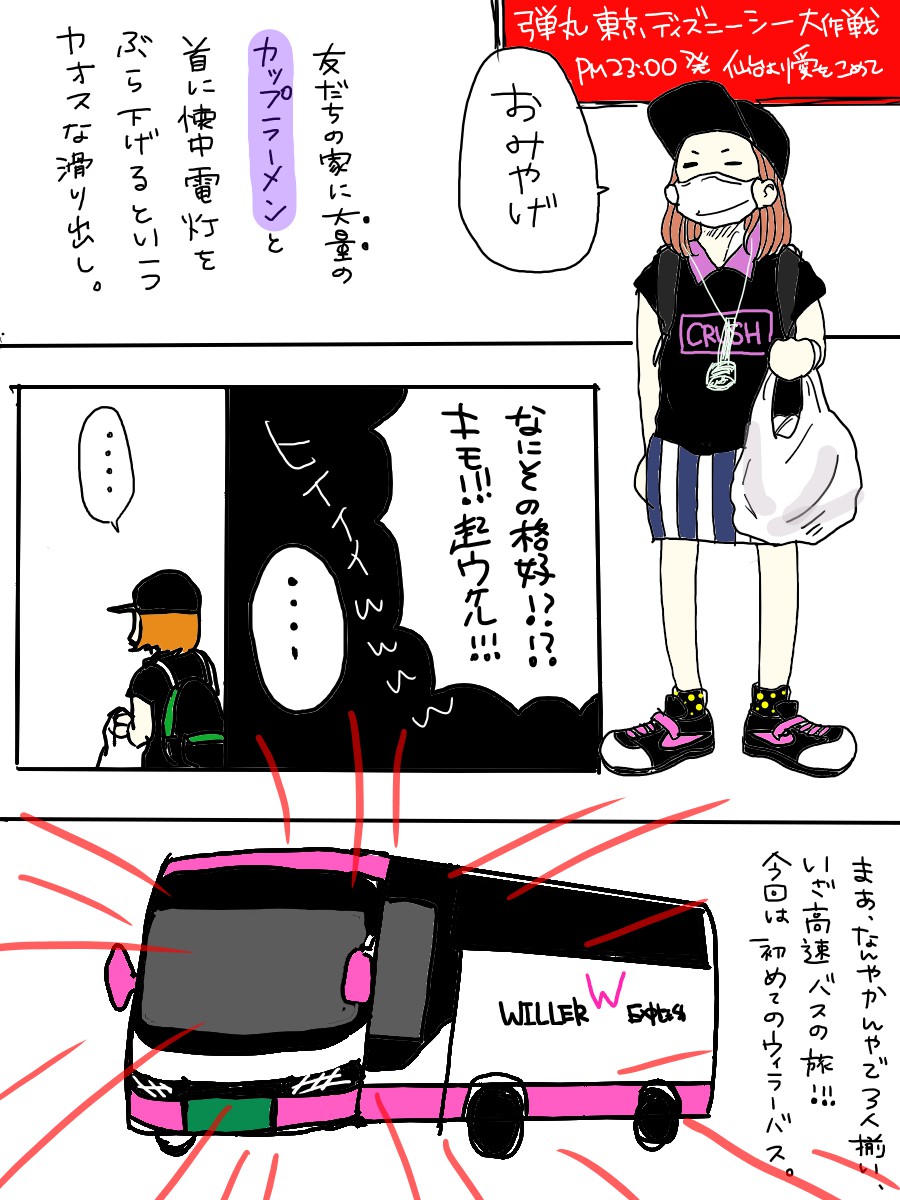 夜行 高速バスでディズニーリゾート ってアリ 化粧はどこで 持ち物は ウィラコレ